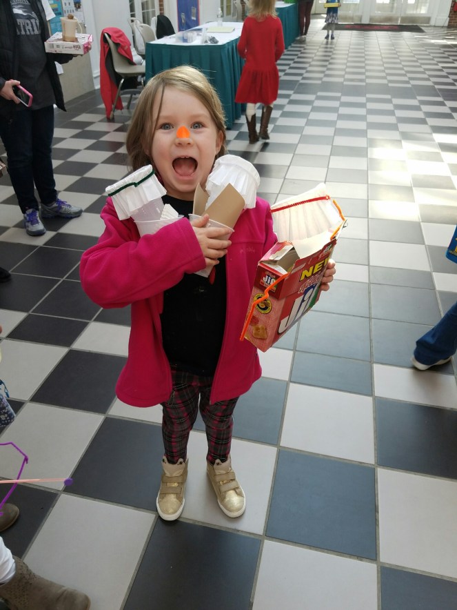 This past Sunday, Cora and I went to the Invention Convention with girl scouts. The girls had to invent a way to pick up and transport a butterfly, represented by a Pringle chip.