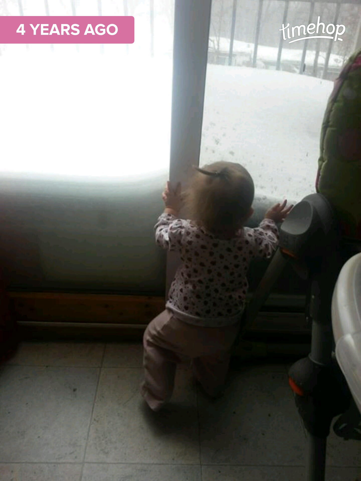 And a picture from 4 years ago today, days away from turning 1… also a snow day. The snow had already reached baby height proportions.